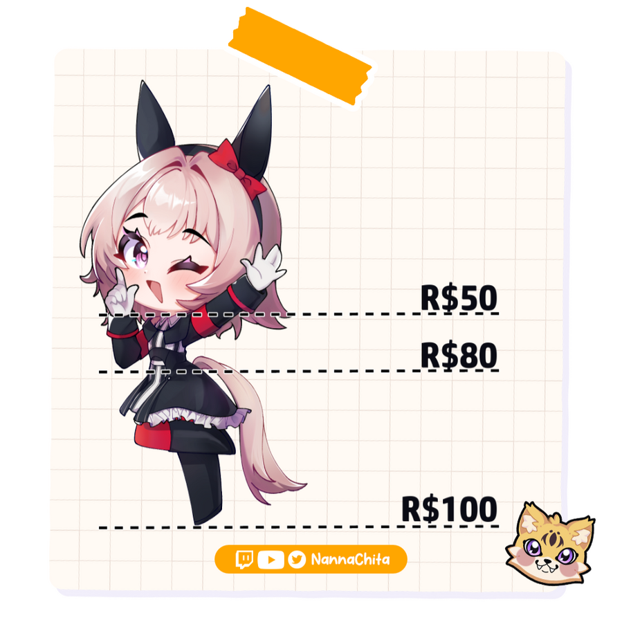• O preço está listado na aba “encomendas”. No caso dos emotes animados, será avaliado a dificuldade do projeto encomendado e definido o preço posteriormente.